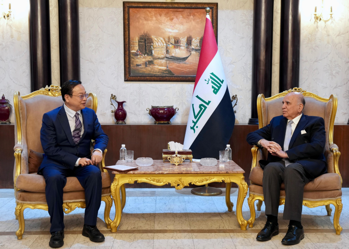 وذكرت الوزارة في بيان أن "نائب رئيس مجلس الوزراء ووزير الخارجية، فؤاد حسين، استقبل اليوم، مساعد وزير دائرة العلاقات الخارجية للجنة المركزية للحزب الشيوعي الصيني جين شين، والوفد المرافق له في بغداد".