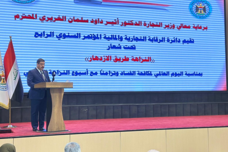 وشدد على "الدور المحوري للمواطن في دعم منظومة النزاهة من خلال الإبلاغ عن حالات الفساد أو التجاوز على المال العام، بما يعزز الشراكة بين المجتمع والمؤسسات الرقابية، ويسهم في ترسيخ الثقة المتبادلة ودعم جهود الدولة في إرساء مبادئ الحوكمة"، مشيرا الى أن "الوزارة ماضية في برامج التحول الإلكتروني، وسيتم الإعلان عن تحولٍ إلكتروني كبير في وزارة التجارة، وإطلاق برامج وخدمات لم تكن موجودة، من شأنها الحد من عمليات الفساد أو التسويف أو المماطلة".