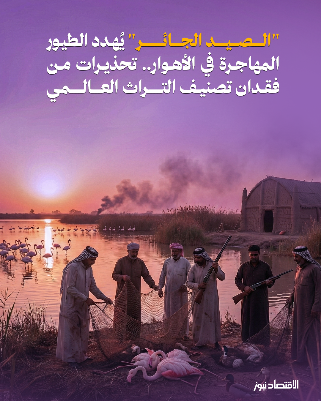 في وقتٍ يشهد فيه العالم تزايدًا في الوعي البيئي وضرورة حماية التنوع الأحيائي، تُسجَّل في جنوب العراق جريمة بيئية تتكرر كل شتاء بصمت مؤلم، حيث لا تزال ممارسات الصيد الجائر للطيور المهاجرة، وخصوصاً طائر "الفلامنغو"، تهدد النظام البيئي وتشوّه صورة العراق أمام المجتمع الدولي. مرصد "العراق الأخضر" أعلن أن قرابة ألف طير مهاجر سقطت ضحية هذا النوع من الصيد خلال شهر كانون الأول/ ديسمبر فقط، في مشهدٍ يبعث على القلق حيال مستقبل الأهوار العراقية المصنفة كموقع تراث عالمي من قبل اليونسكو.