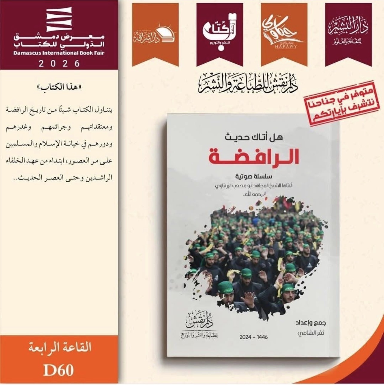 وأوضح المصدر ، أن الكتاب يتضمن تلخيصًا لصوتيات الزعيم السابق لتنظيم القاعدة في العراق، الإرهابي أبو مصعب الزرقاوي، وكان مدرجًا ضمن إصدارات دار نقش للطباعة والنشر، وهي دار نشر سورية مقرها إدلب.