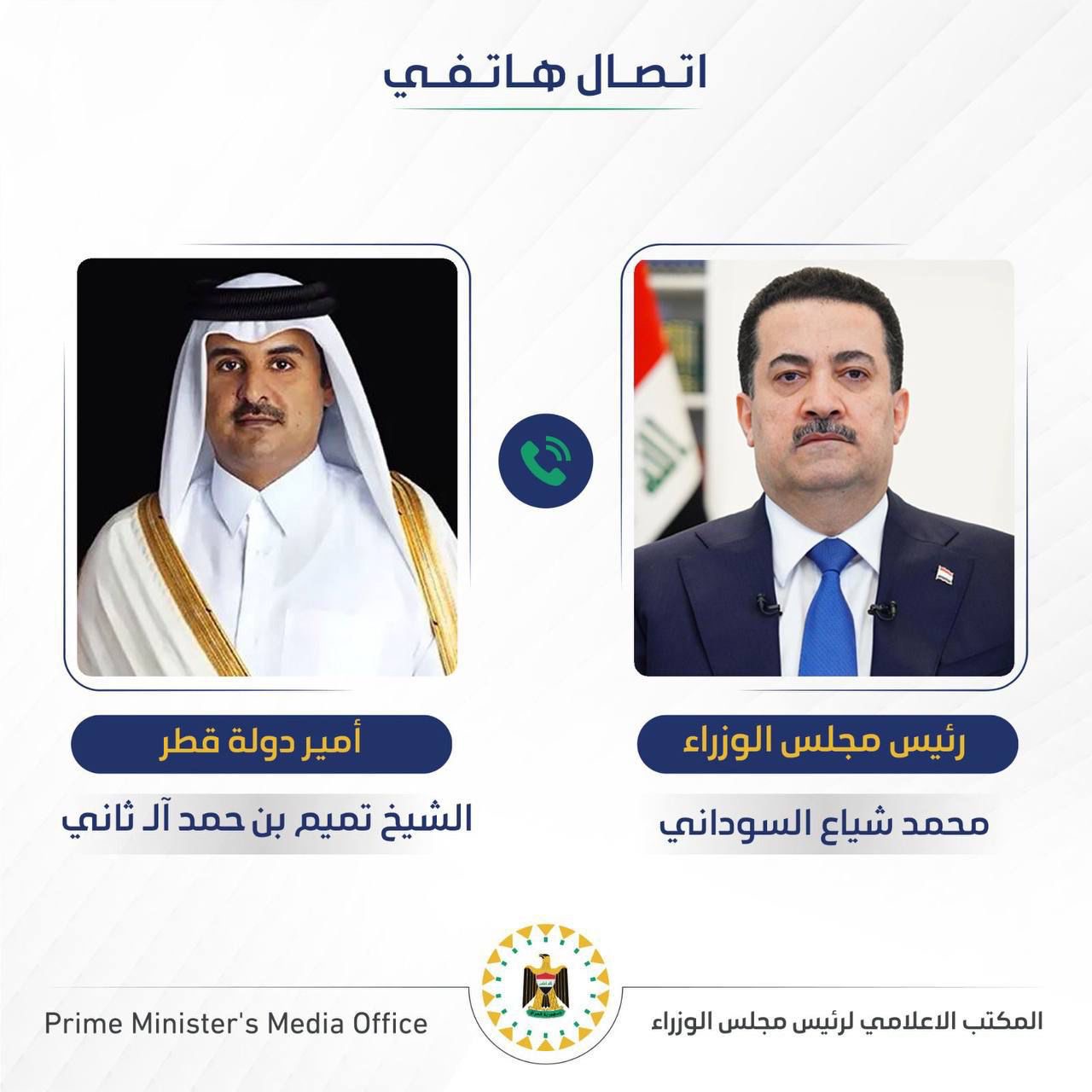 وذكر بيان لمكتب السوداني، ان الاخير "أجرى اليوم السبت، مباحثات هاتفية مع أمير دولة قطر الشيخ تميم بن حمد آل ثاني، تم خلالها استعراض التطورات الامنية والتصعيد الخطير الذي استهدف بلدان المنطقة بما فيها العراق وقطر، وعواقب ذلك على الأمن الأقليمي والدولي".