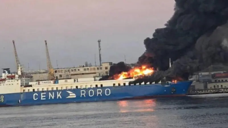 وكانت السفينة التي لم يُكشف عن اسمها تغادر المرفأ في البحر الأسود وعلى متنها حمولة من الذرة عندما ضربتها مسيّرة، بحسب السلطات الأوكرانية.