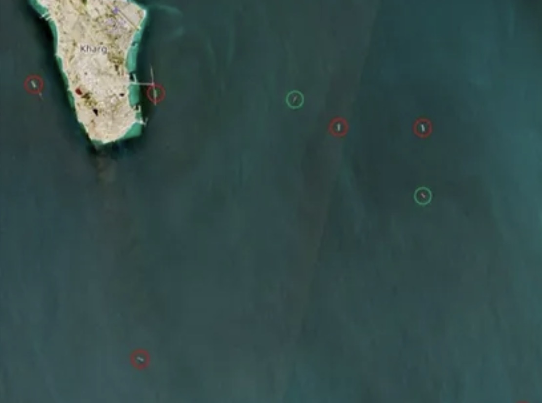 وكانت ناقلتان عملاقتان جداً من ناقلات النفط الخام راسيتين عند محطة التصدير في جزيرة خرج الإيرانية في 7 مارس 2026، بينما كانت ناقلات أخرى راسية بالقرب من الجزيرة.