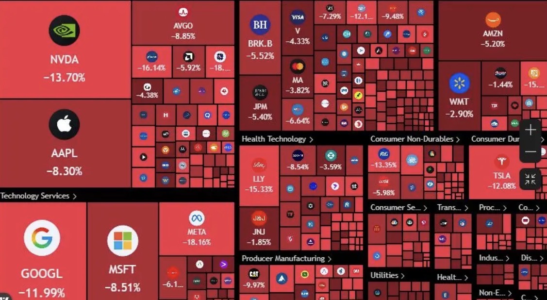 الشركات الكبرى ليست أفضل حالاً، حيث تراجعت أسهم شركة ألفابت Alphabet، الشركة الأم لغوغل، بنسبة 9% تقريباً، وانخفضت أسهم مايكروسوفت بنسبة 7% تقريباً هذا الأسبوع، بينما تراجعت أسهم إنفيديا وأمازون بنسبة 3% تقريباً لكل منهما.